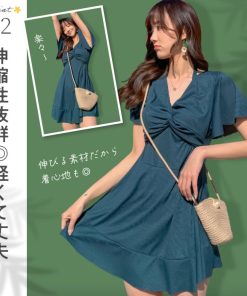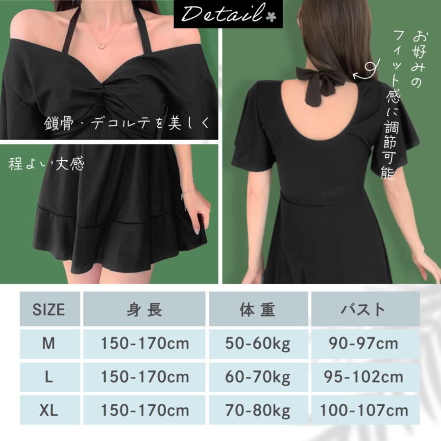 肩が出るデザインで華奢見えに加え、ウエスト周りをしっかりガードする事で