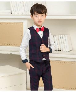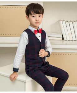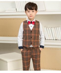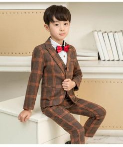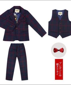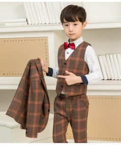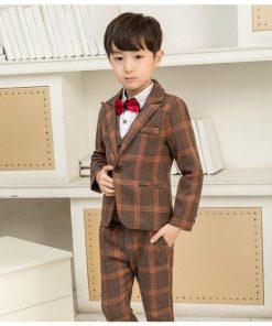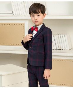 男の子 子供スーツ 入学式 卒業式 スーツ 男子 小学生 フォーマル チェック柄 キッズスーツ 子供服 長袖 タキシード 発表会 演奏会 ベビー服 4点セット【ジャケ