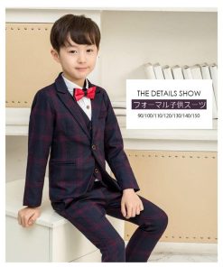 男の子 子供スーツ 入学式 卒業式 スーツ 男子 小学生 フォーマル チェック柄 キッズスーツ 子供服 長袖 タキシード 発表会 演奏会 ベビー服 4点セット【ジャケ