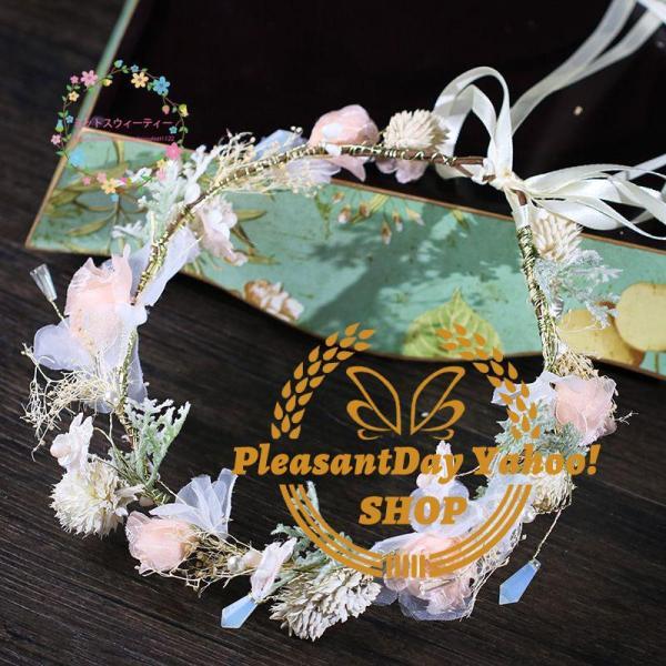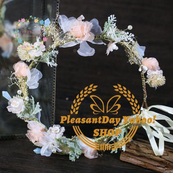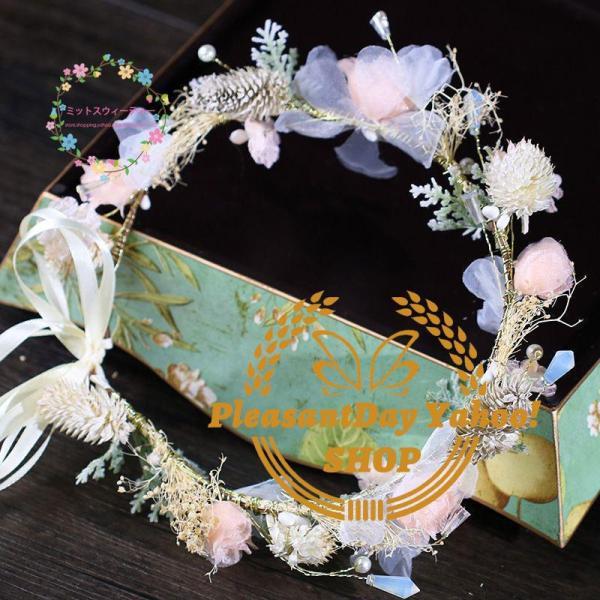 花冠 花かんむり ウェディング ヘッドドレス ティアラ リボン 大人花冠 造花 髪飾り 花輪 リゾート 花嫁 二次会 結婚式 フェス 森ガール ボヘミア 手作り