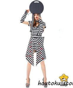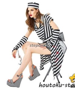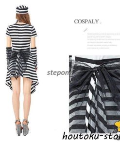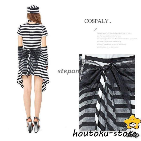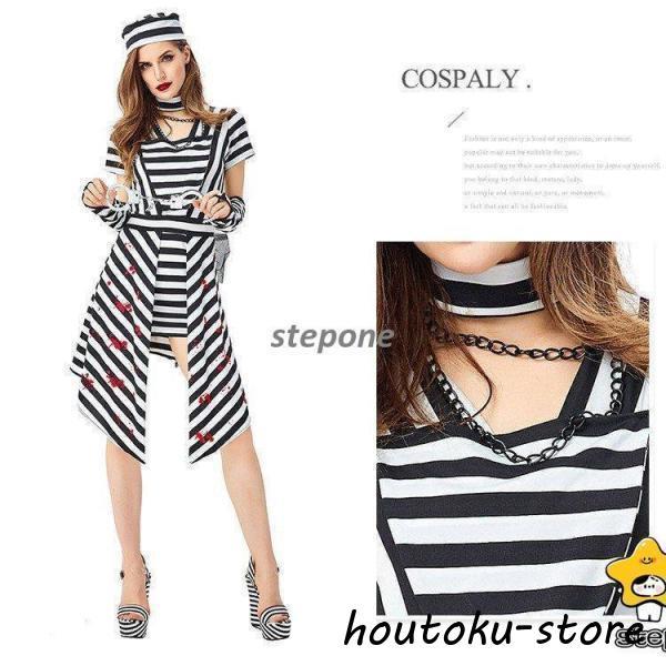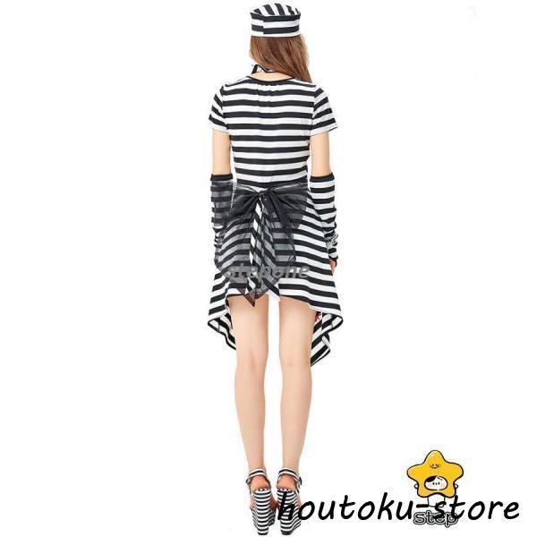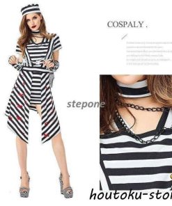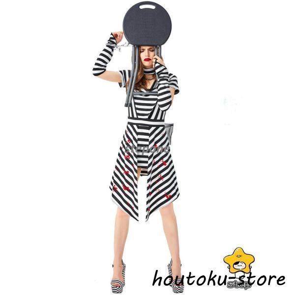 衣装 大人用 女性用仮装 コスプレ 囚人服 白黒ボーダー柄 犯人 コスチューム 囚人 ポリス 軍服 レディース ガールズ