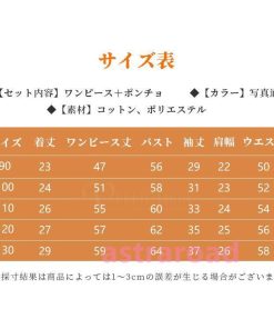 【110】ポンチョ着丈26cm ワンピース丈55cm バスト60cm 袖丈33cm 肩幅24cm ウエスト54cm