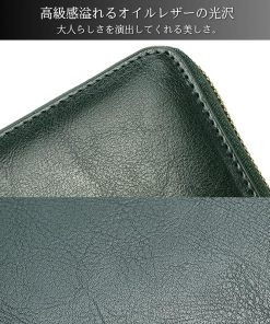 財布 メンズ 長財布 本革 レザー ラウンドファスナー 大容量 緑