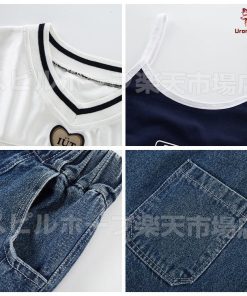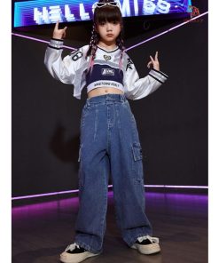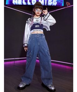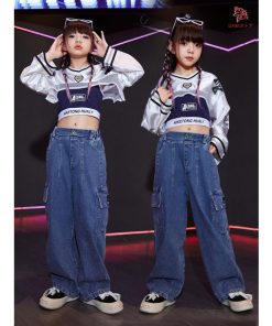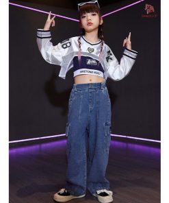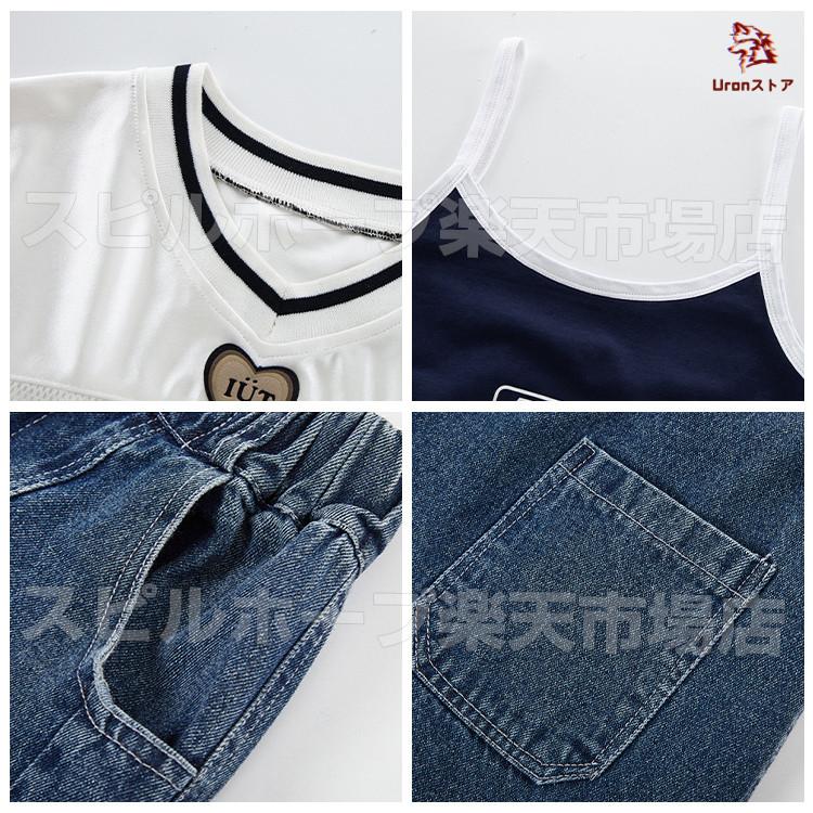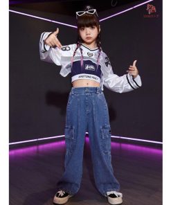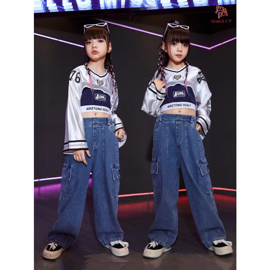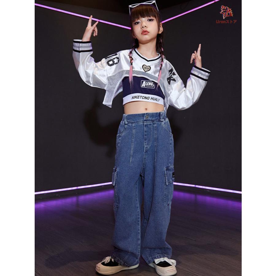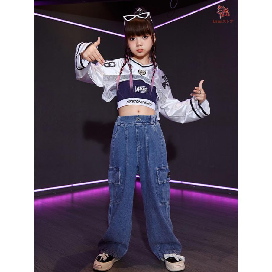 長袖 トップス 紺 キャミソール デニムパンツ キッズ ダンス衣装 セットアップ 上下セット おしゃれ 女の子 かっこいい かわいい カーゴパンツ カジュアル へそ