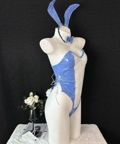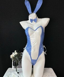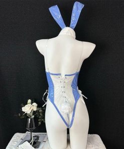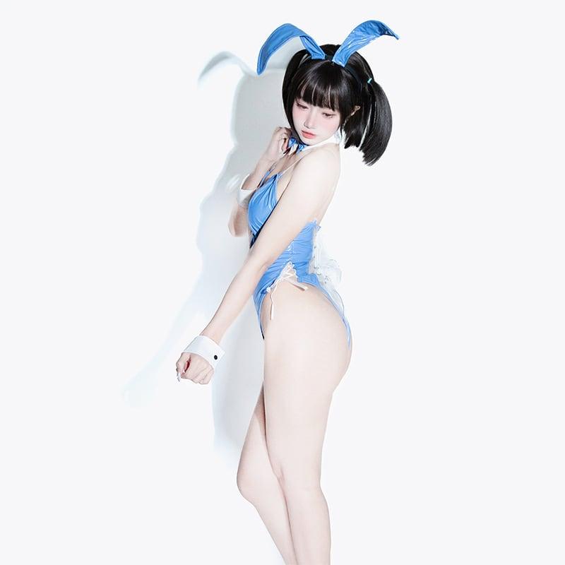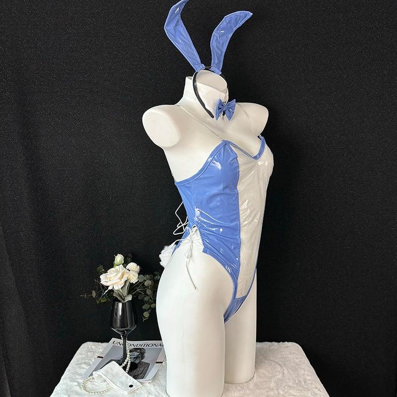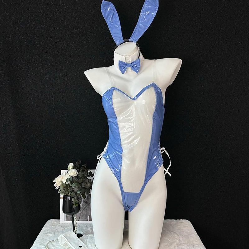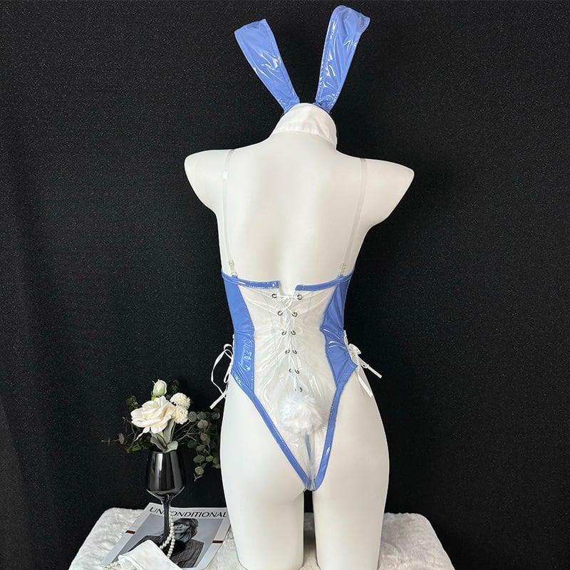 (4点セット)バニーガール シースルー ブルー コスチューム セクシーランジェリー