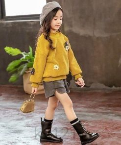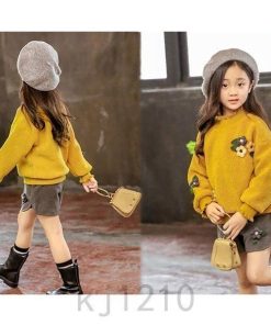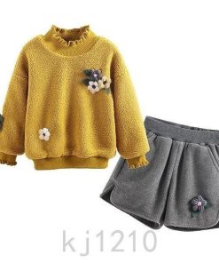 2点子供服セットアップキッズ女の子おしゃれ長袖秋冬厚手上下セット韓国子供服ジュニアトップスショートパンツ暖かいカジュアル可愛い