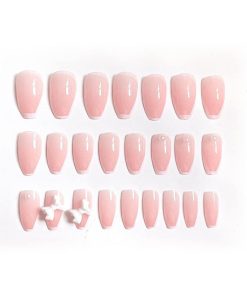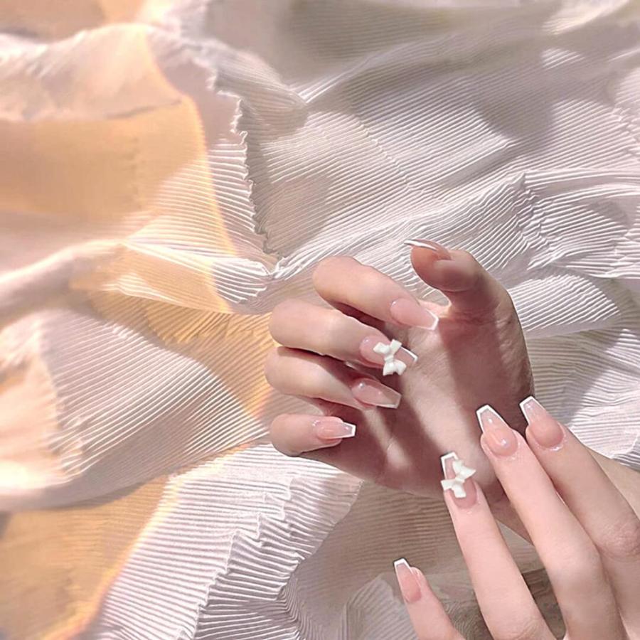 24本のネイルピース 白いボーダー 蝶?び フレンチ 成人式 披露宴 パーティー 二次会 結婚式ネイル