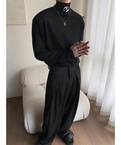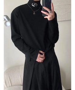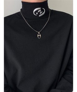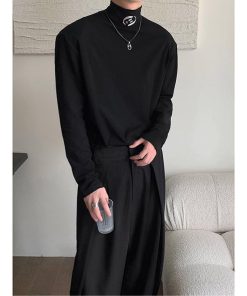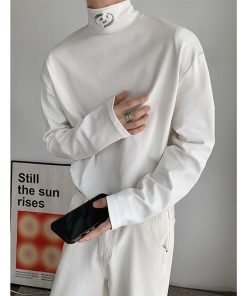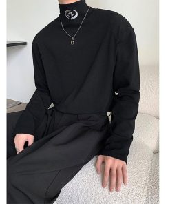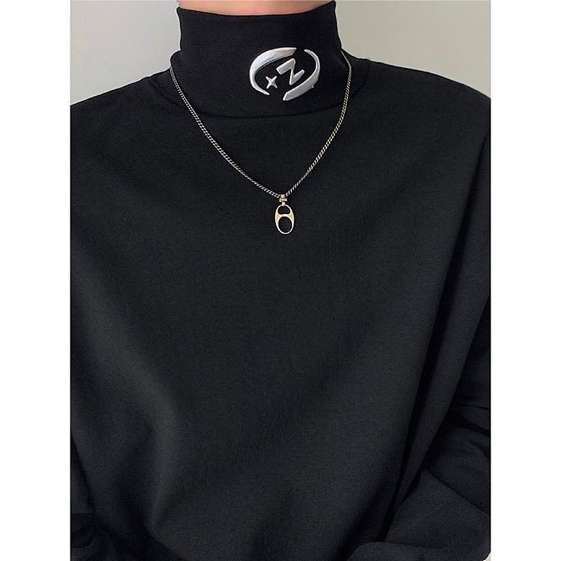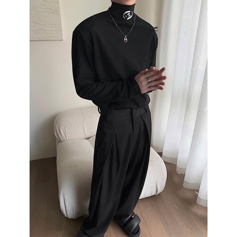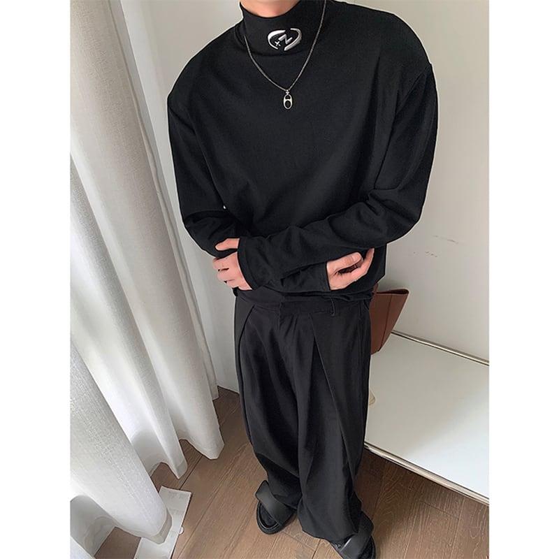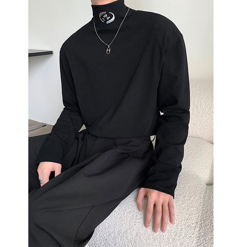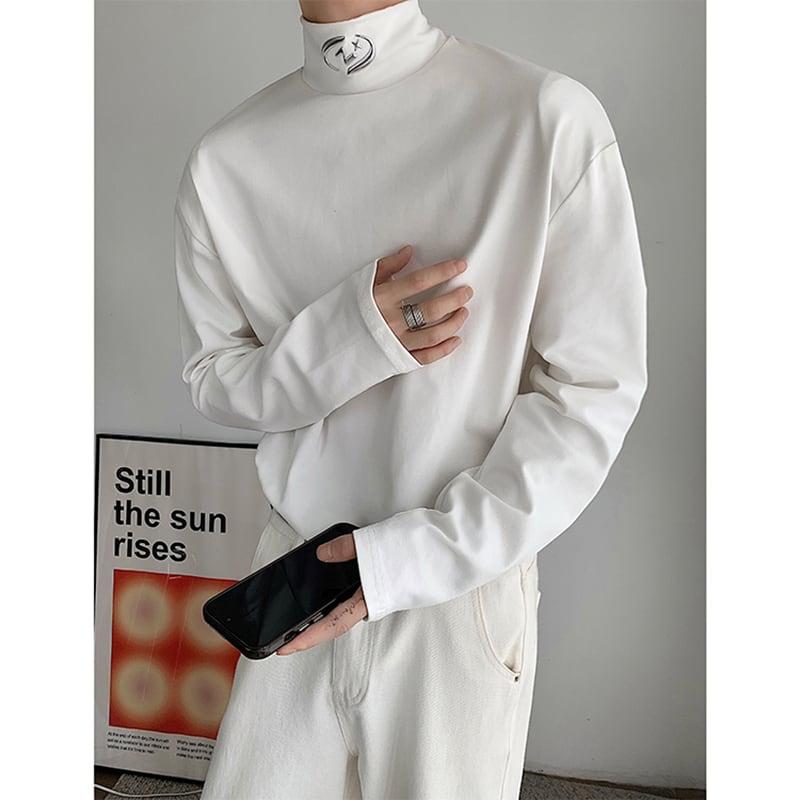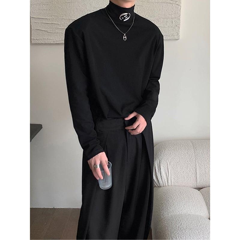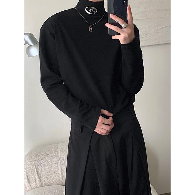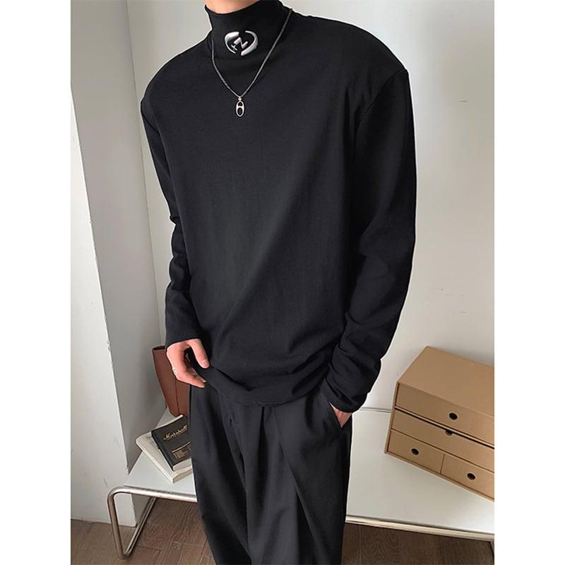 2color Tシャツ男女兼用 メンズ ハイネック ブラック ホワイト 合わせやすい