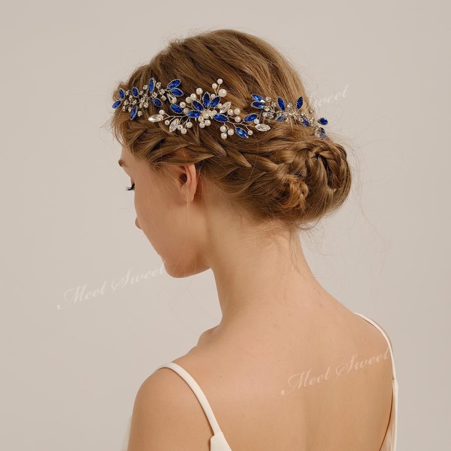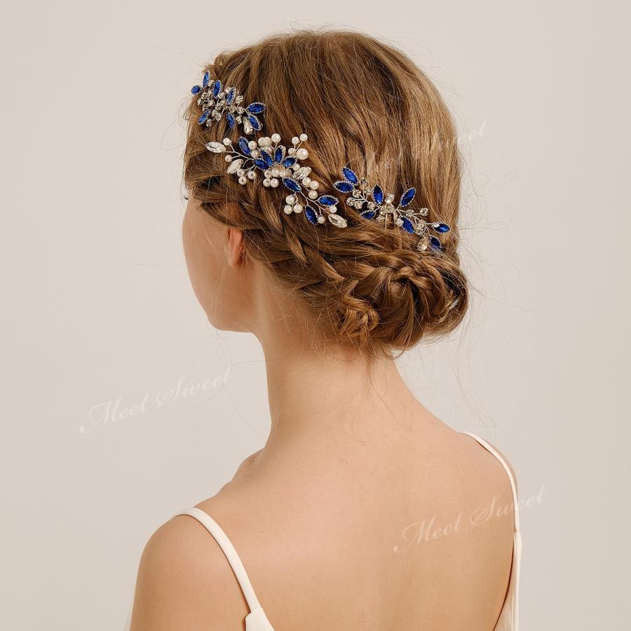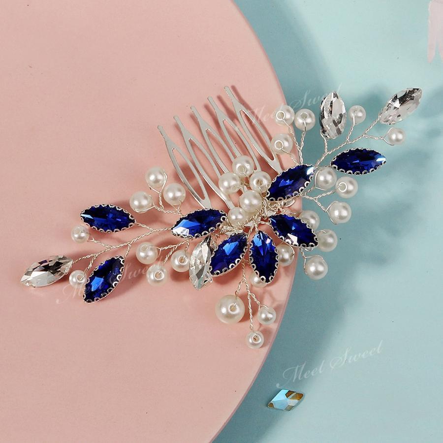 3点セット ヘッドドレス 花 小枝 ブルー ウェデイング 髪飾り コーム Uピンク ウエディング ブライダル 花嫁 二次会 パーティー 結婚式 披露宴 発表会 着物