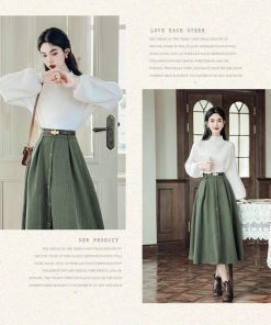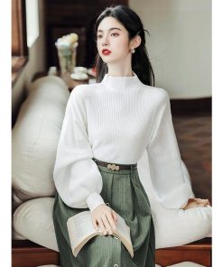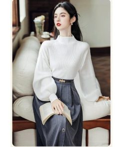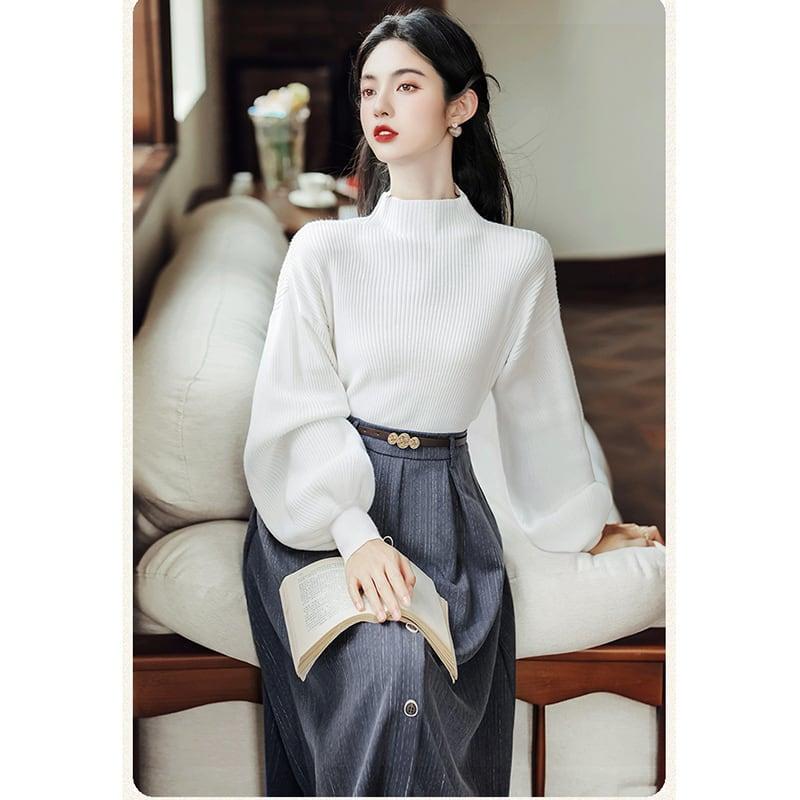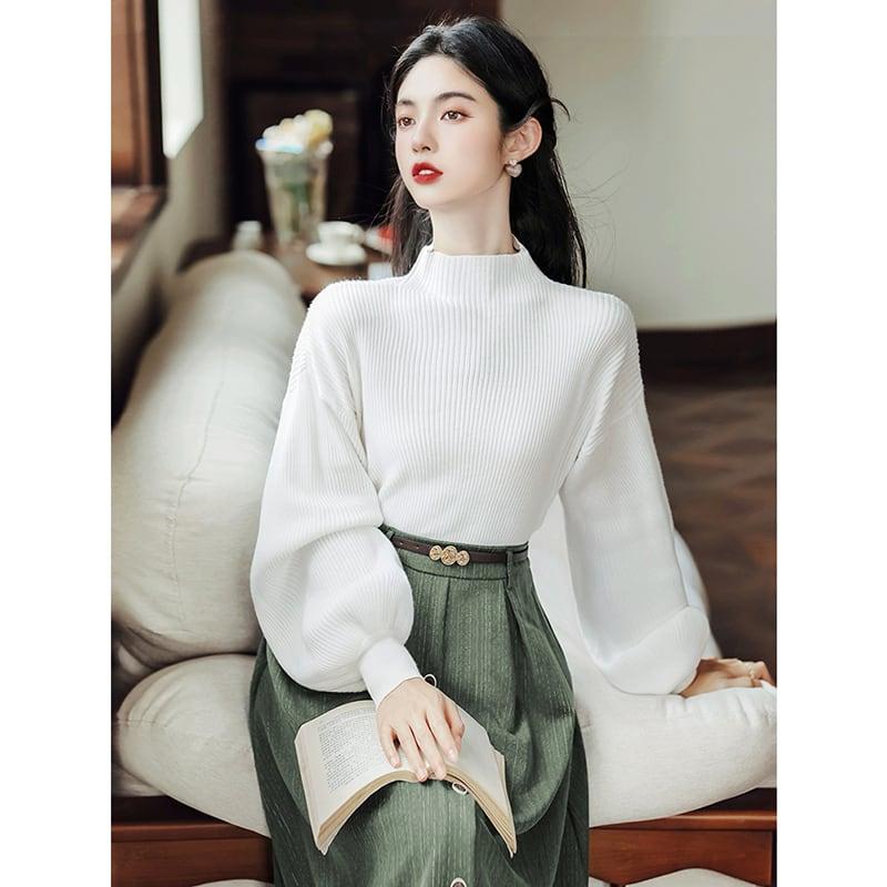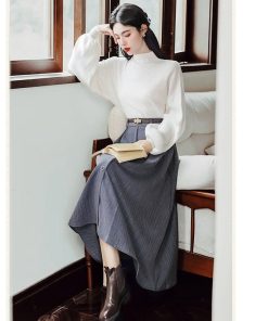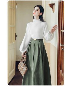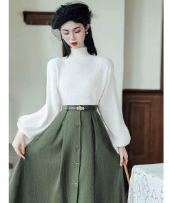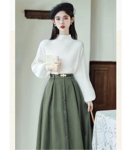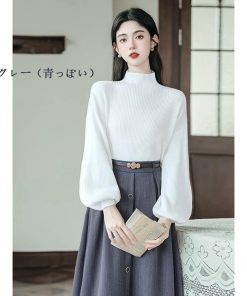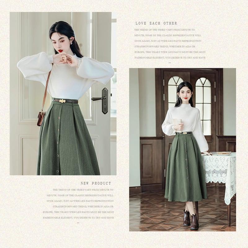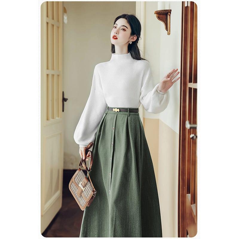 3color ニットトップス+スカート レディース レトロ 上下セット