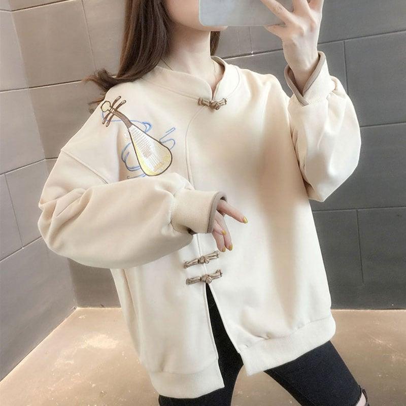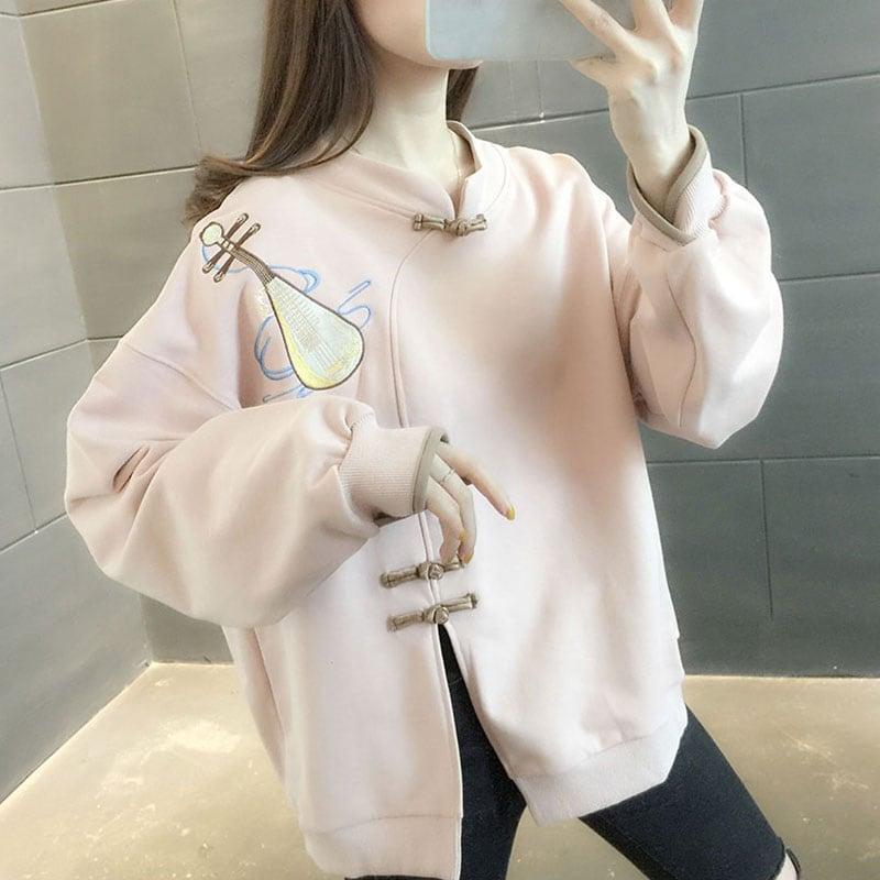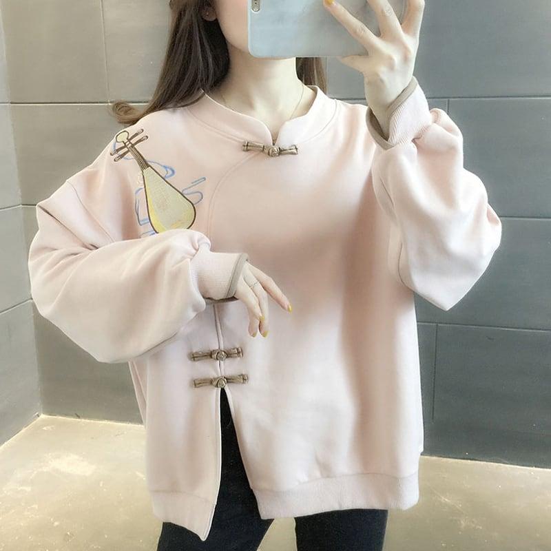 3color 普段着 チャイナボタン 刺繍 リュート ゆったり 可愛い 合わせやすい