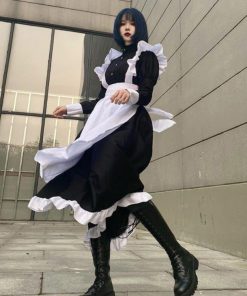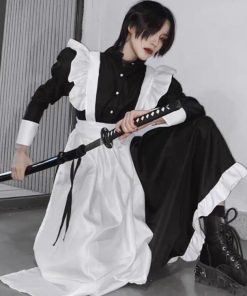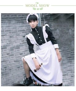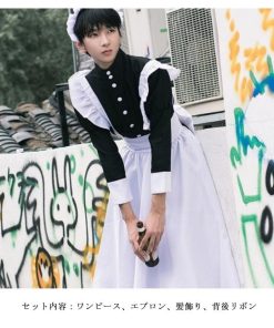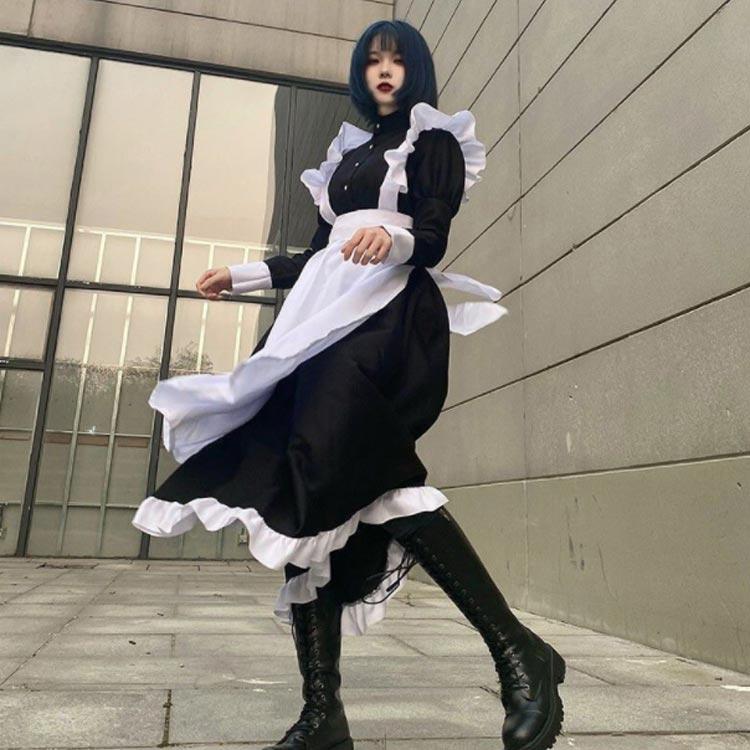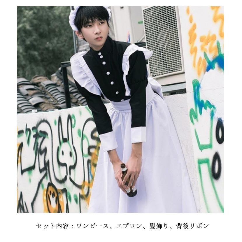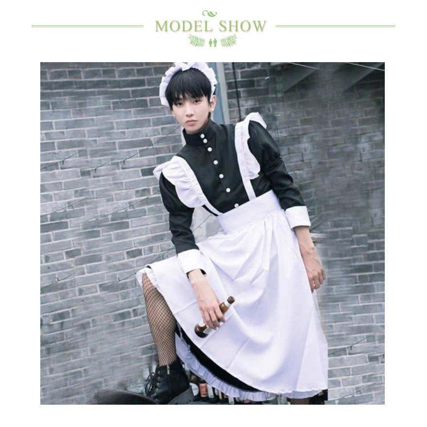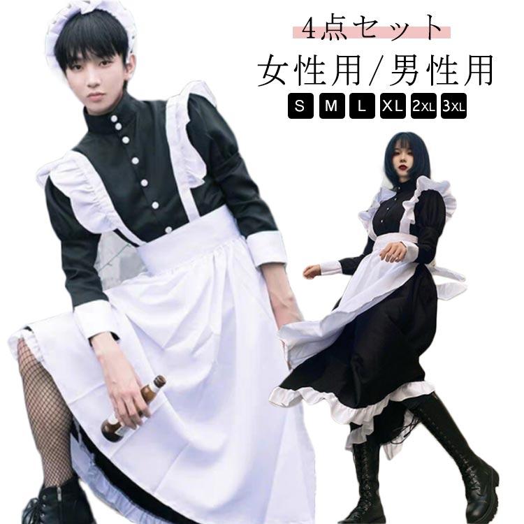 4点セット 女装 女子 ハロウィン 男性 長袖 ワンピース かわいい カチューシャ コスチューム コスプレ ロリータ カフェ 仮装 メイド服 大きいサ