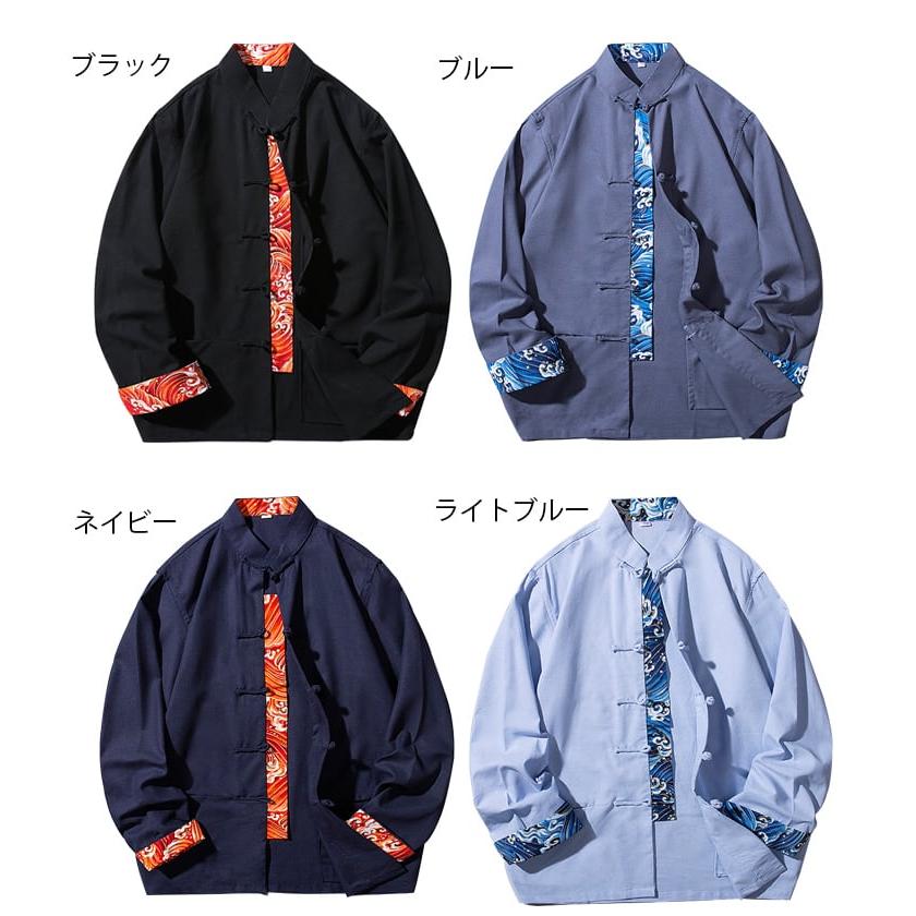 7color 改良唐装 レトロ シャツ 長袖シャツ 男女兼用 メンズ 大きいサイズ