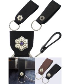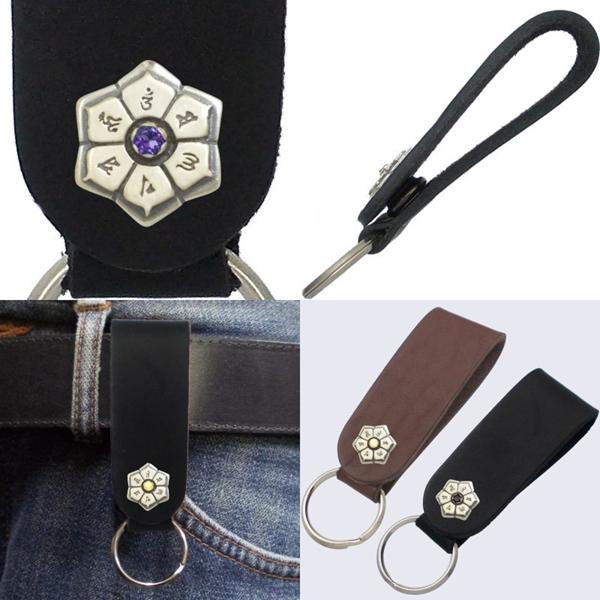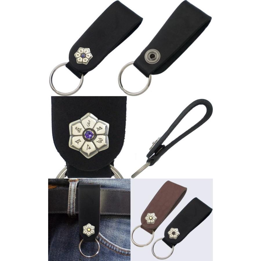 ★六字大明陀羅尼の梵字が刻み込まれた蓮華を型取ったレザーキーホルダー。