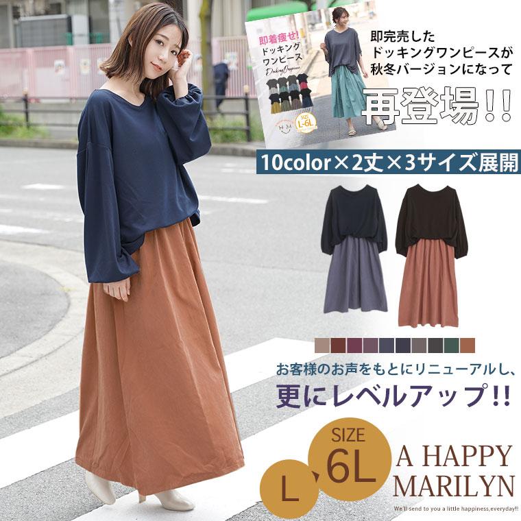 A HAPPY MARILYN 大きいサイズ レディース ワンピース 新色追加 お客様の声をもとに改良 360度完璧シルエット 1枚で着痩せ完成 ドッキングワンピース オリジナル ワンピ