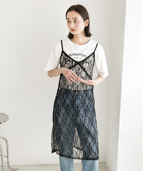 キーワード:ワンピース ノースリーブ レース 膝丈 お花見 デート フェミニン プチプラ 新生活 大人カジュアル 定番