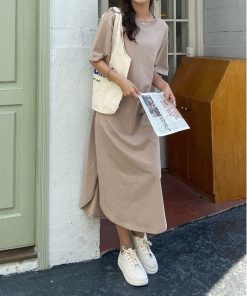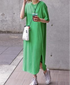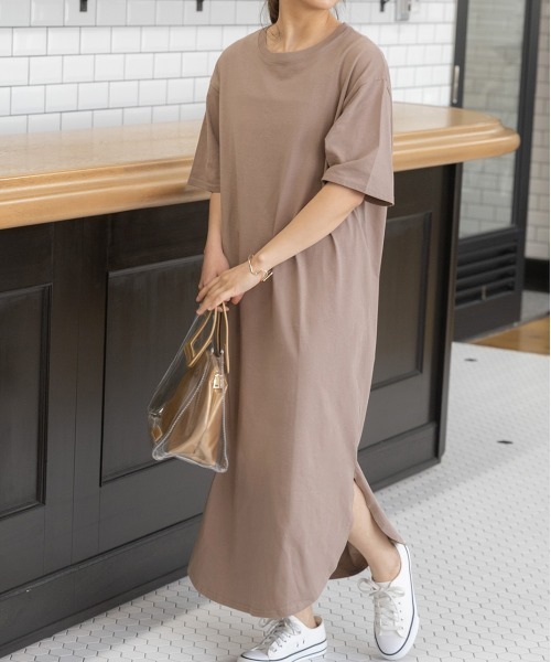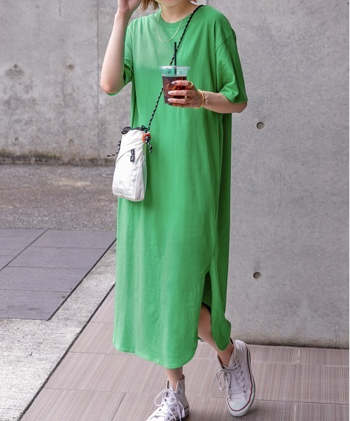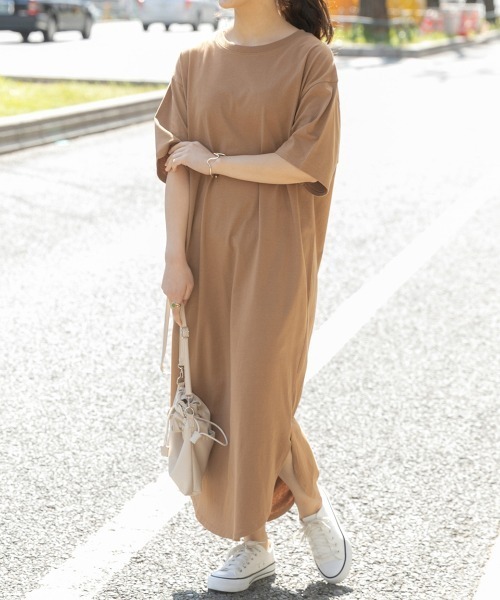 キーワード:ワンピース ロング 台形 半袖 無地 ピクニック レジャー フェス ライブ プチプラ ベーシック 夏 春 大人カジュアル 定番
