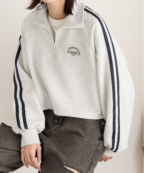 商品名:裏起毛・刺繍入り サイドラインハーフジッププルオーバー