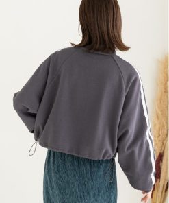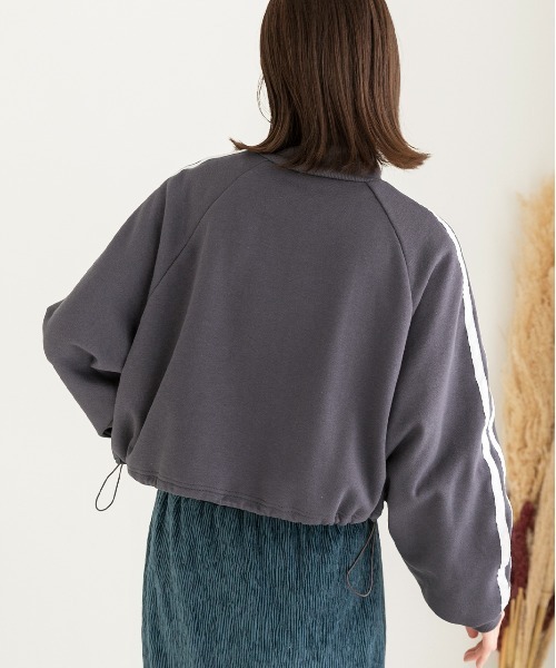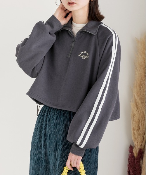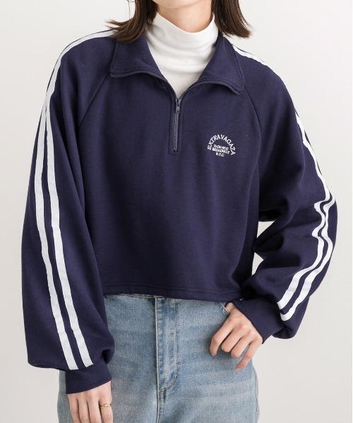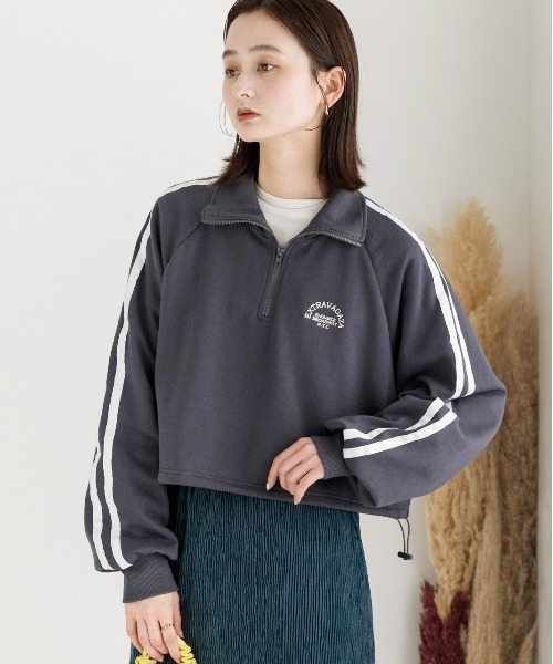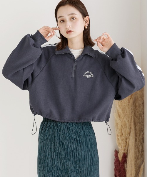ad thie tシャツ 裏起毛・刺繍入り サイドラインハーフジッププルオーバー レディース