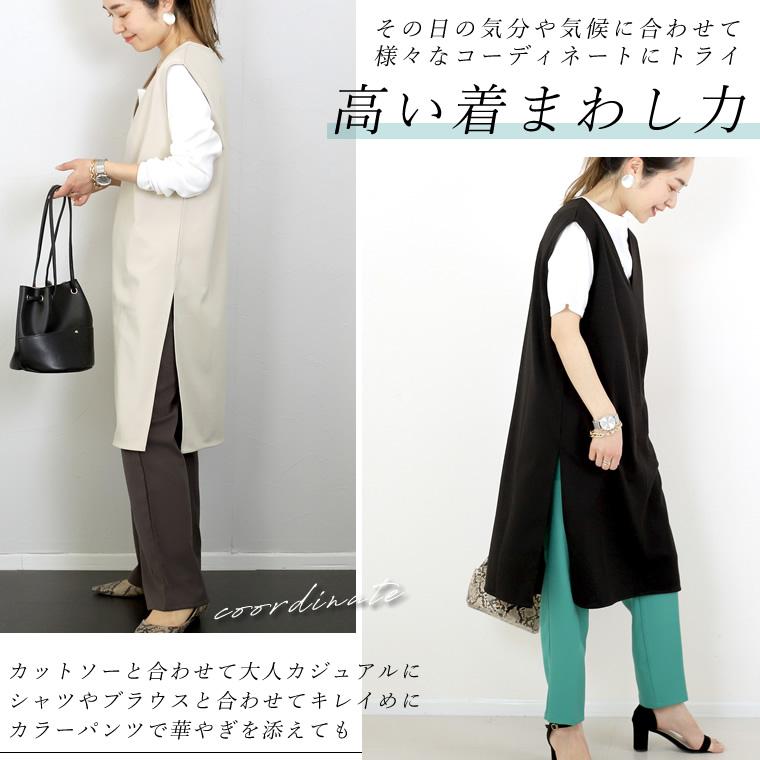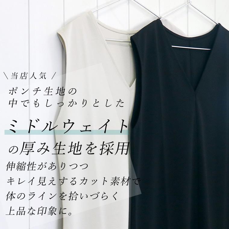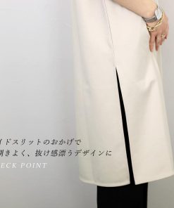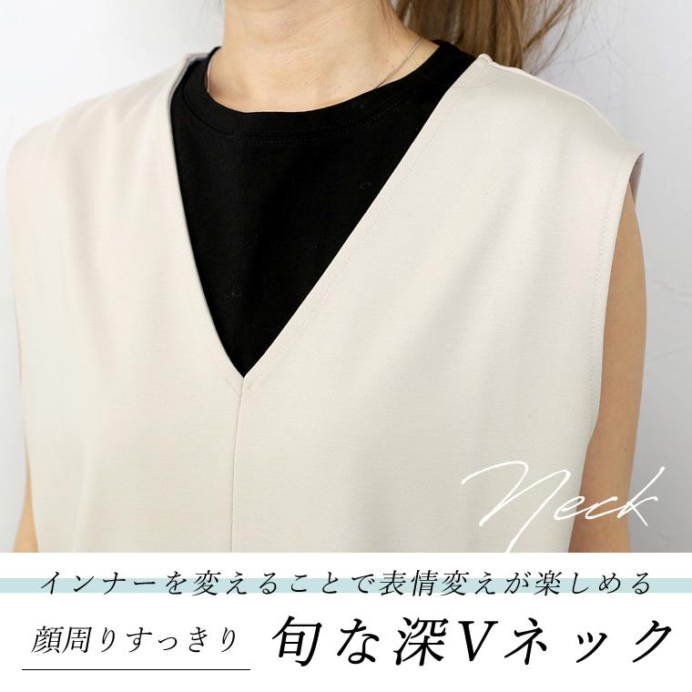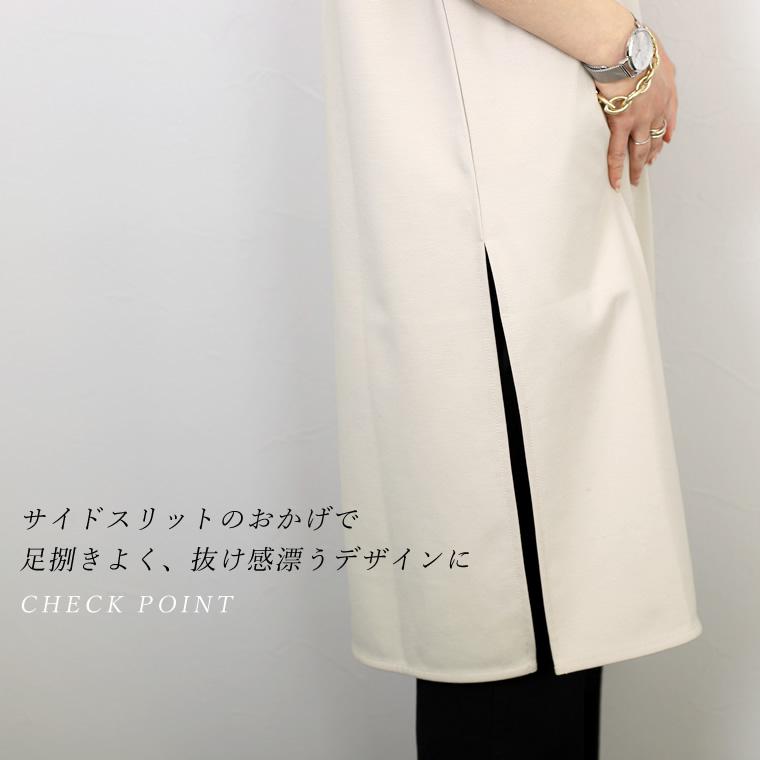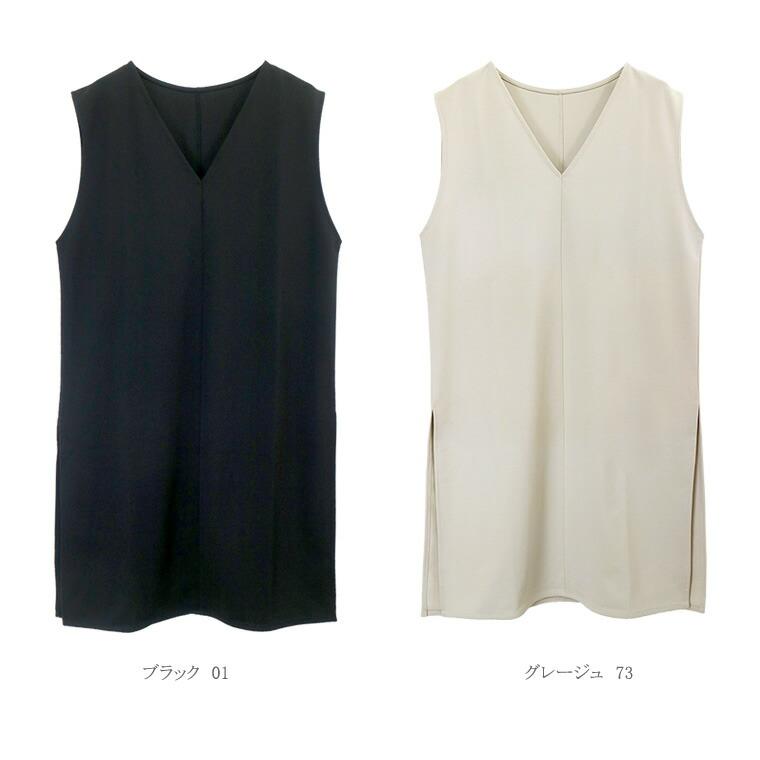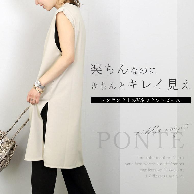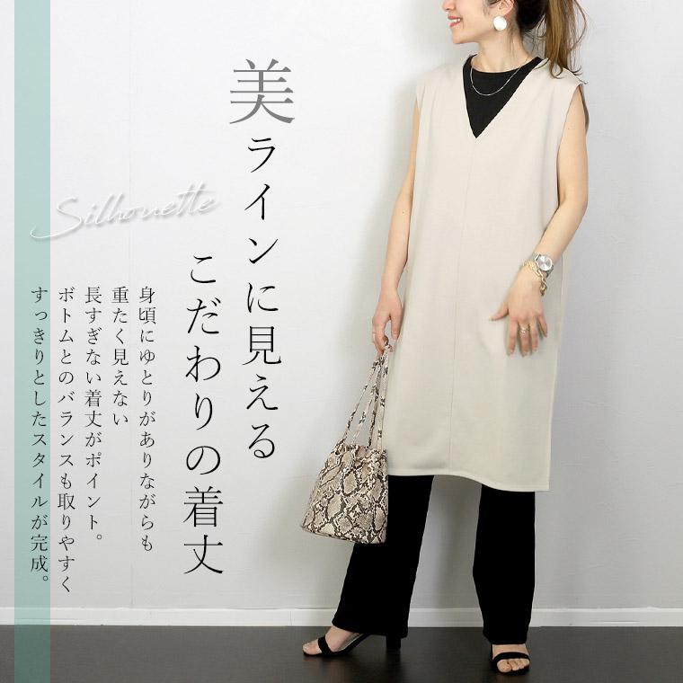 ワンピース チュニック 深Vネック スリット 小顔 体型カバー 重ね着 レイヤード 着まわし ポンチ 楽ちん イージーケア 30代 40代 レディース