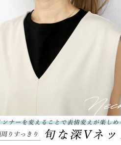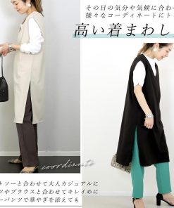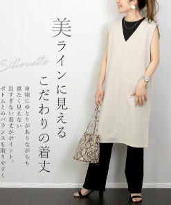 合わせるアイテムを変えて様々な着こなしが楽しめるVネックワンピース。