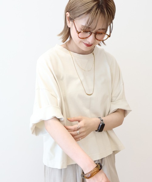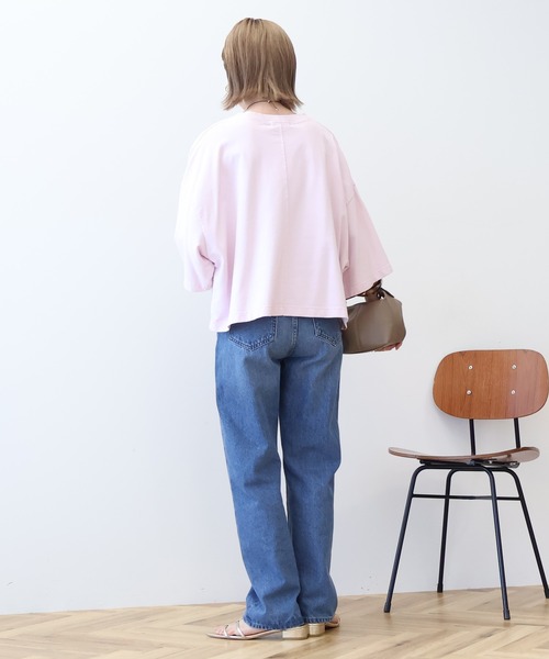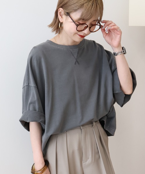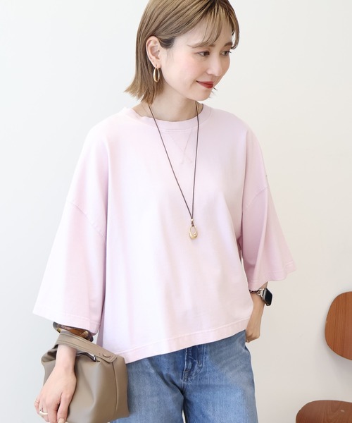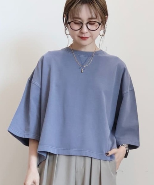 AMERICAN HOLIC tシャツ ピグメント加工ミニ裏毛5分袖プルオーバー レディース