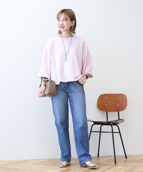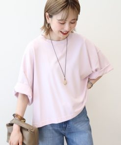 商品名:ピグメント加工ミニ裏毛5分袖プルオーバー