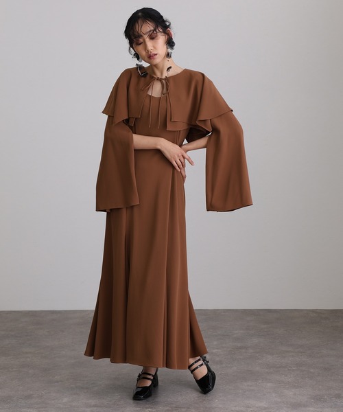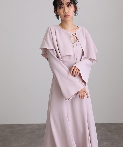 atlo ドレス ミモレ丈&袖ありフォーマルワントーンケープセレモニー結婚式 パーティードレス オケージョンドレスお呼ばれ 二次会 成人式
