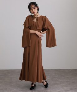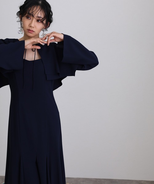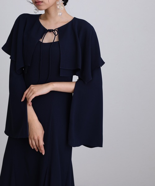 商品名:ミモレ丈&袖ありフォーマルワントーンケープセレモニー結婚式 パーティードレス オケージョンドレスお呼ばれ 二次会 成人式