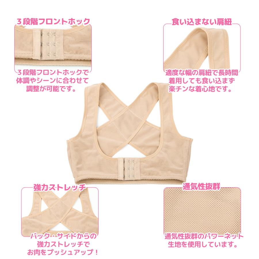 背筋補正 サポート バストアップ インナー サポーター 補正下着 レディース 姿勢ベルト 猫背 背筋 肩こり 仮装 コスプレ ハロウィン 女装 シルエット 補正 はみ肉 解消 盛る 盛り きれいなバスト 美ボディ 愛されボディ