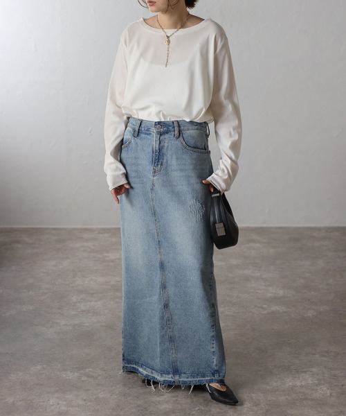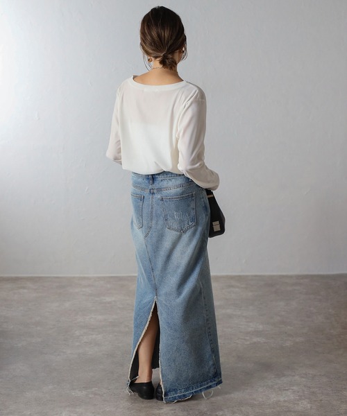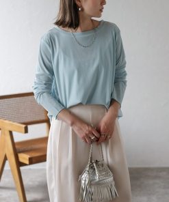 キーワード:tシャツ レディース クルーネック 長袖 無地 キレイめ ベーシック 大人カジュアル