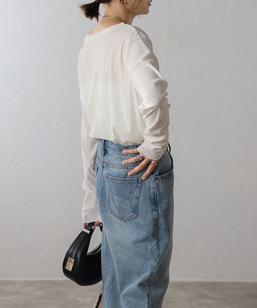 Bonjour Sagan tシャツ リラックスシアーベロアロンT レディース