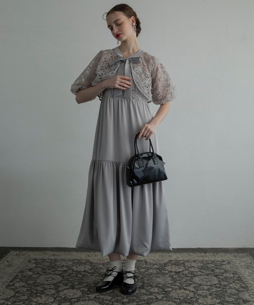 キーワード:ドレス ティアード リボン レース ロング 花柄 刺繍 半袖 WEB限定 ZOZO限定 オケージョン ガーリー キレイめ パーティー フェミニン 夏 結婚式二次会