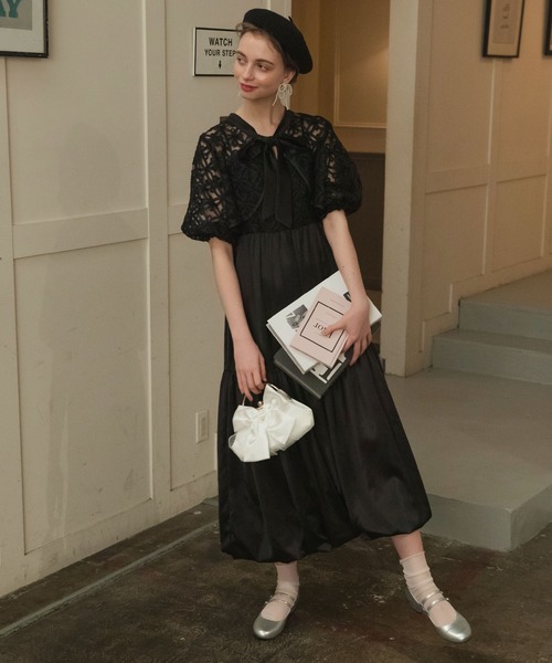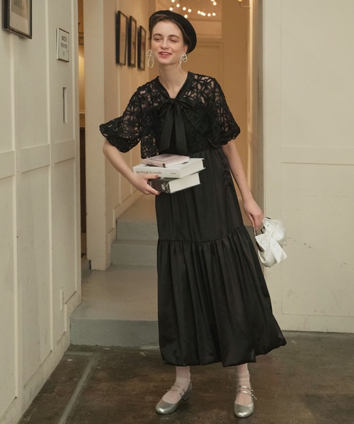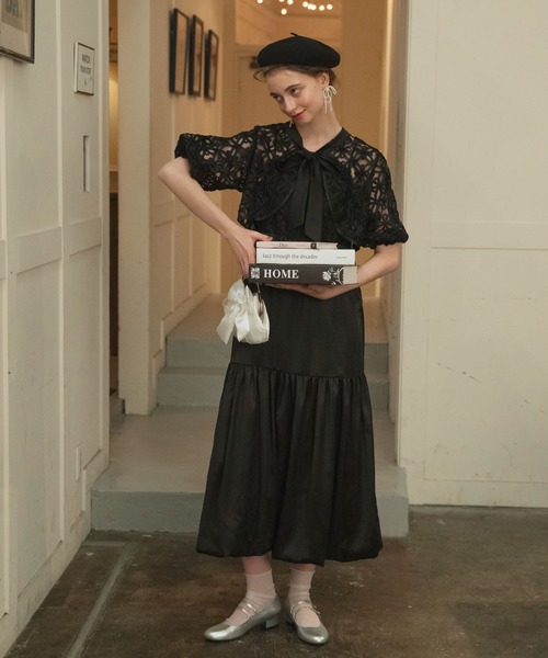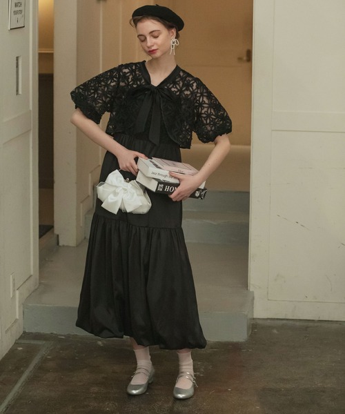 BONLECILL noir ドレス 「BONLECILL noir」マルチウェイフラワーシアービッグリボンボレロ&サテンティアードバルーンキャミドレス