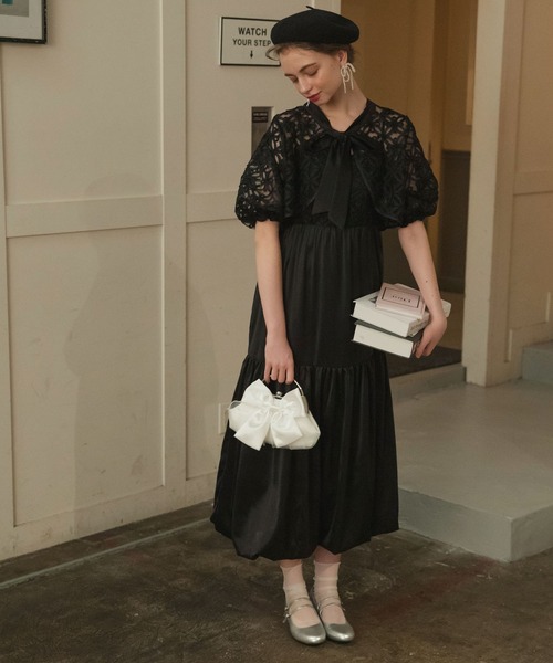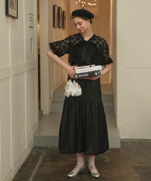 商品名:【BONLECILL noir】マルチウェイフラワーシアービッグリボンボレロ&サテンティアードバルーンキャミドレス