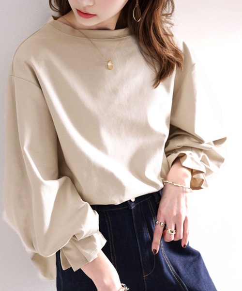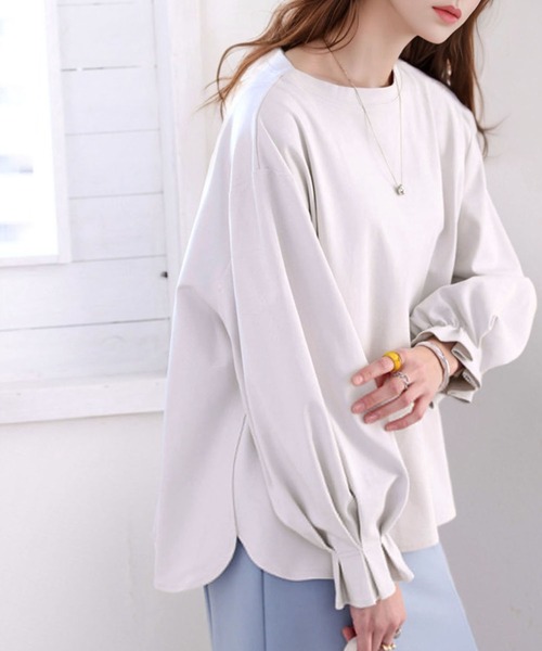 商品名:大人のやみつきほんのりスウィート。綿100%、さらり滑らか。ふんわり&くしゅが可愛い大人トップス オーバーサイズ カットソー