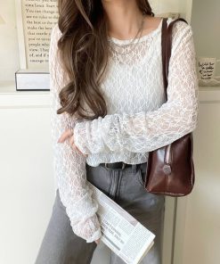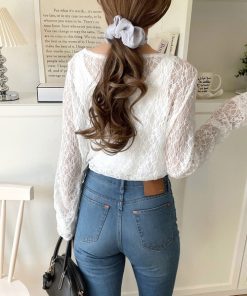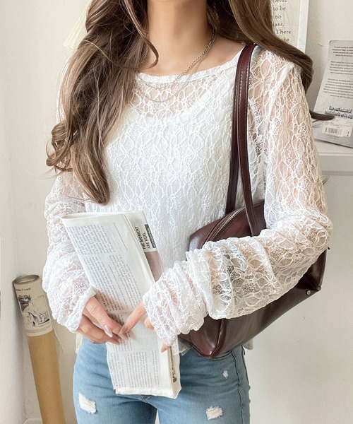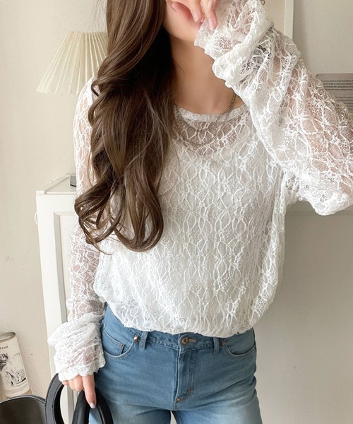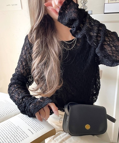 商品名:大人の上品映えレースアイテム。袖ギャザーレーストップス(長袖)