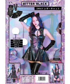 clearstone 黒猫 ブラックキャット 猫 レディース 女性 女 衣装 仮装 コスプレ コスチューム ビターブラック 2WAY レザーキャット