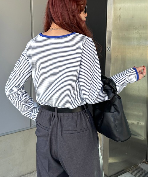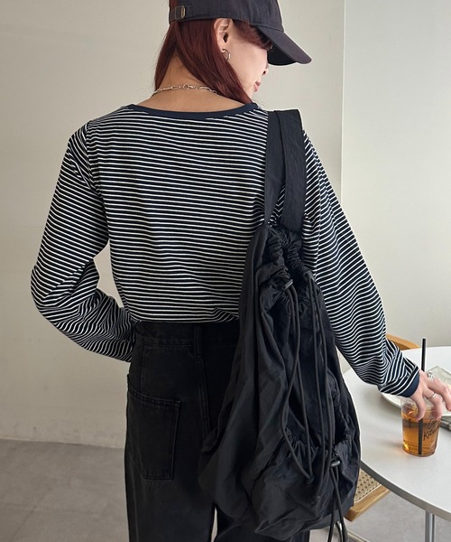 キーワード:tシャツ レディース uネック ボーダー 長袖