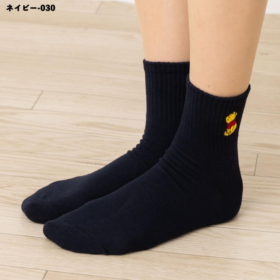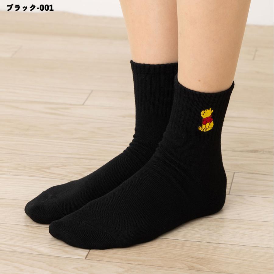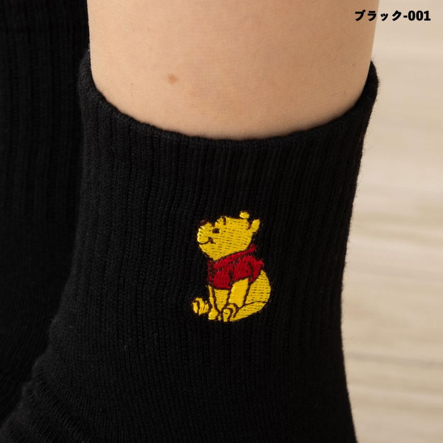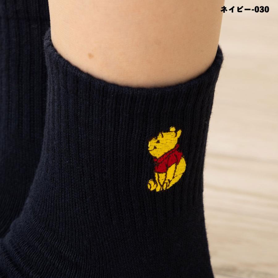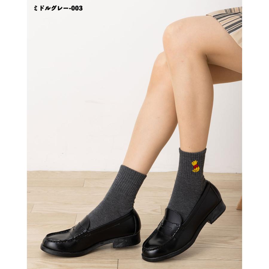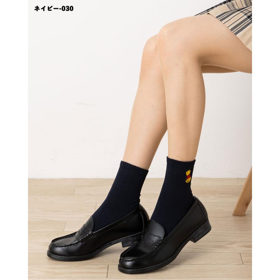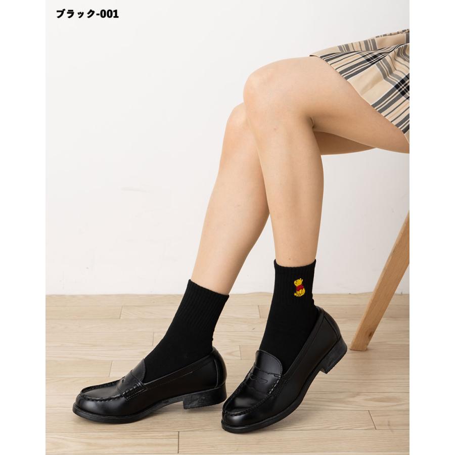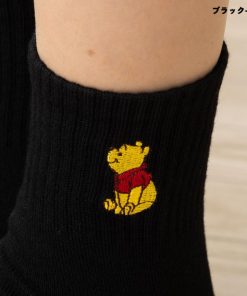Disney くまのプーさん ワンポイント刺繍 アメリブ ロークルーソックス 23-25cm 全4色 ディズニー 靴下 レディース スクール