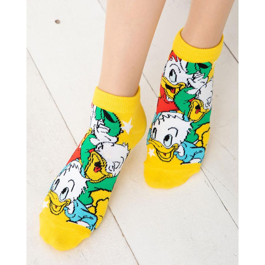 Disney ヒューイ・デューイ・ルーイ わーい 柄 ソックス スニーカー丈 23-25cm レディース 靴下 ディズニー
