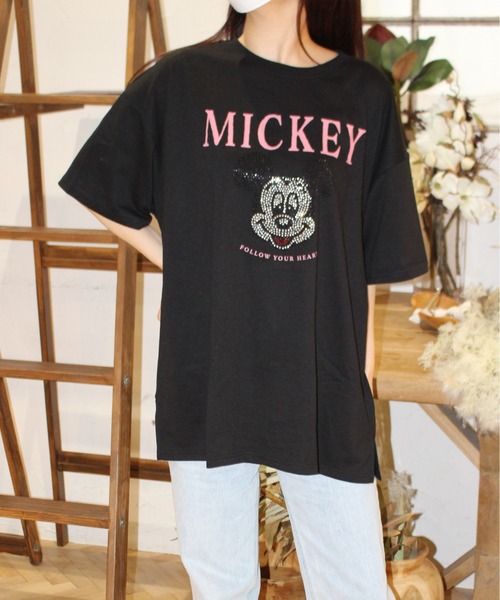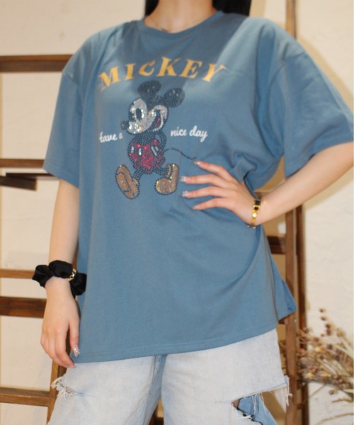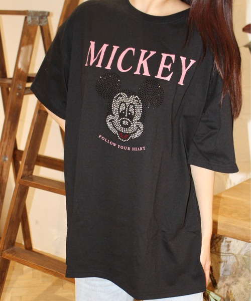 Disney tシャツ 「DISNEY/ディズニー」ラインストーン半袖Tシャツ ミッキーマウス レディース メンズ