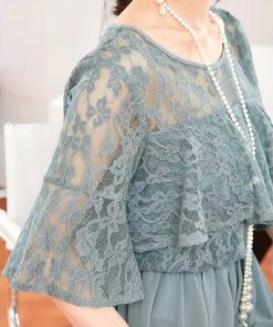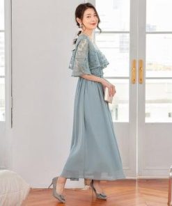 DRESS+ ドレスプラス パーティードレス ワンピース 体型カバー 結婚式 (ブルーグレー)