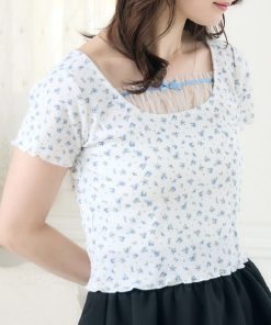 キーワード:tシャツ レディース uネック ショート丈 花柄 半袖 無地