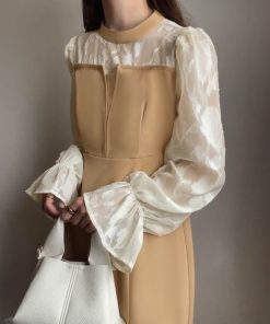 キーワード:ワンピース フレア ロング 花柄 長袖 無地