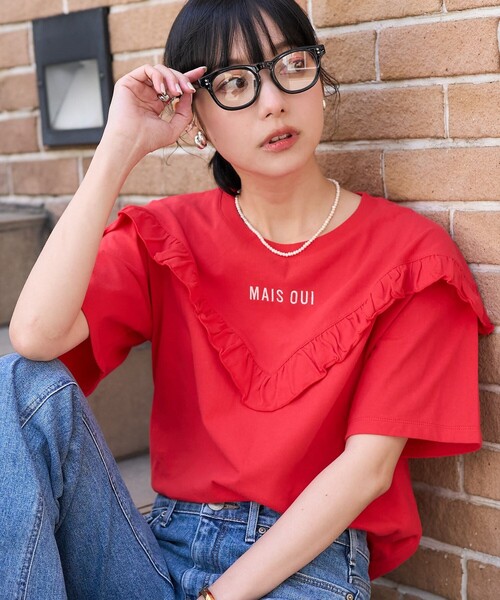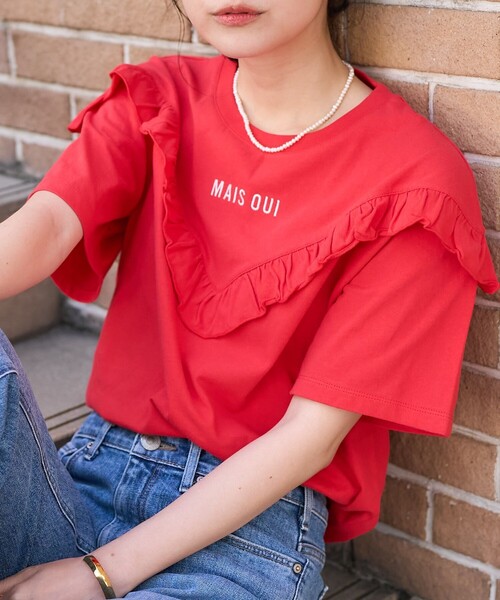 FREAK’S STORE tシャツ Vフリル ロゴTシャツ レディース