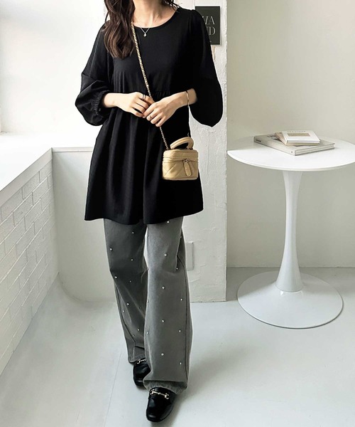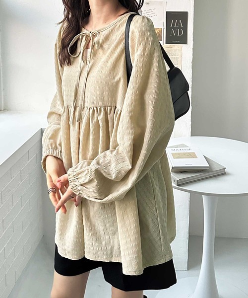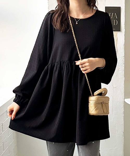 参考商品名:前後2WAYリボンペプラムジャガードチュニックブラウス