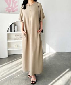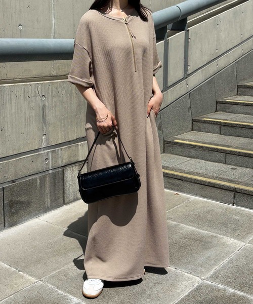 参考商品名:前後2WAYハーフジップTシャツワンピース