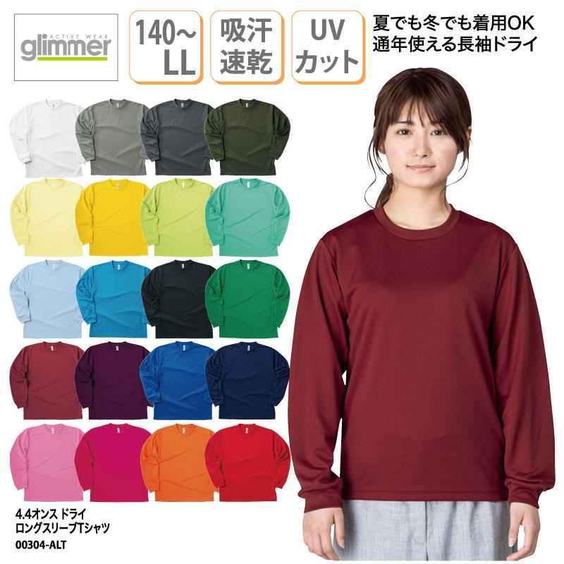 glimmer Tシャツ 長袖 メンズ レディース ホワイト 白 ブラック 黒 大きいサイズ ドライ 快適 吸汗 ロンT 男女兼用 トムス 304-ALT 刺繍 プリント