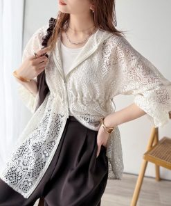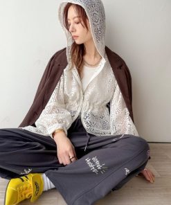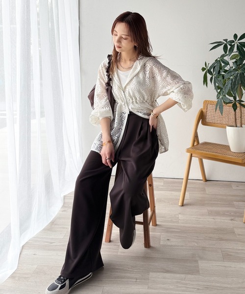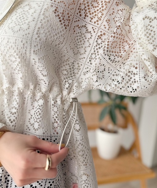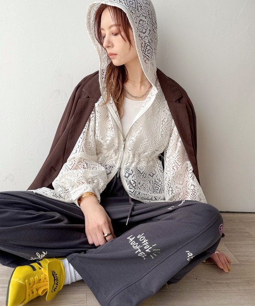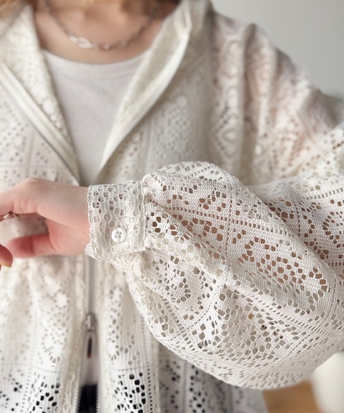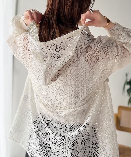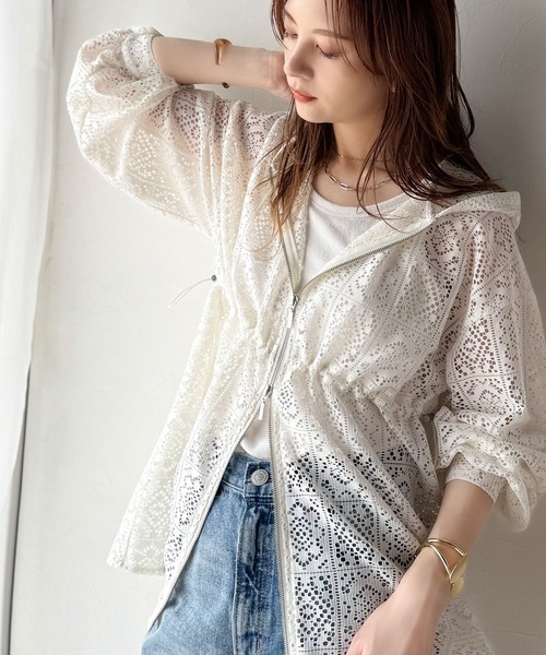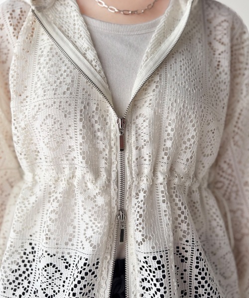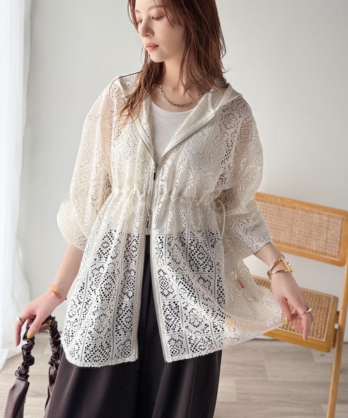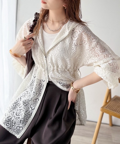 参考商品名:《JaVaジャバ コラボ》高級感溢れる大人の透け感。パネルレースウエストドロストパーカー(長袖)